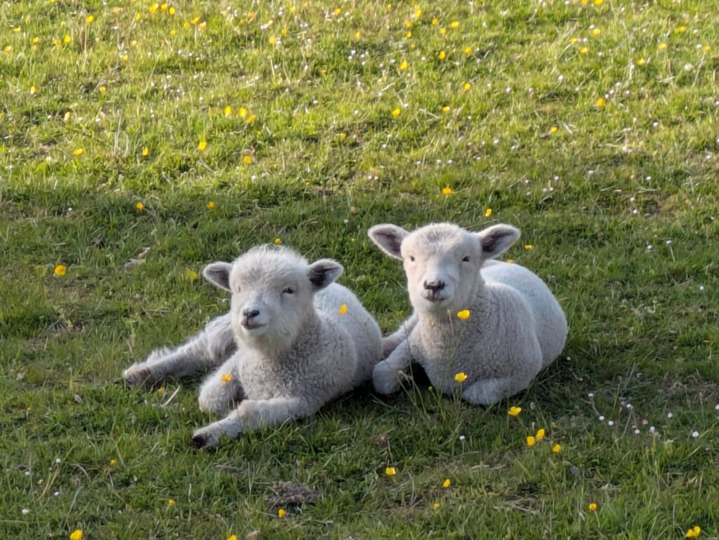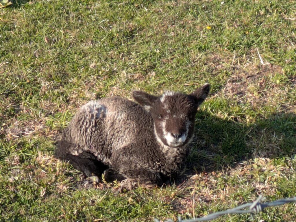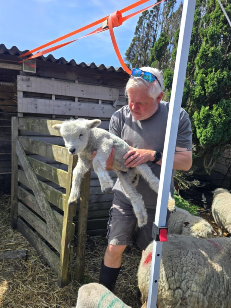We have mostly sheep, but also a few chickens that lay eggs and a couple of ducks. We also have a lovely sheepdog Bluey. He loves to round up the sheep, but he’s also very friendly and likes to play.