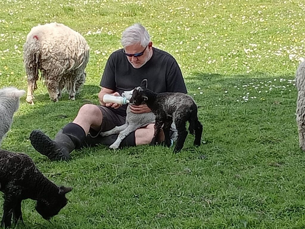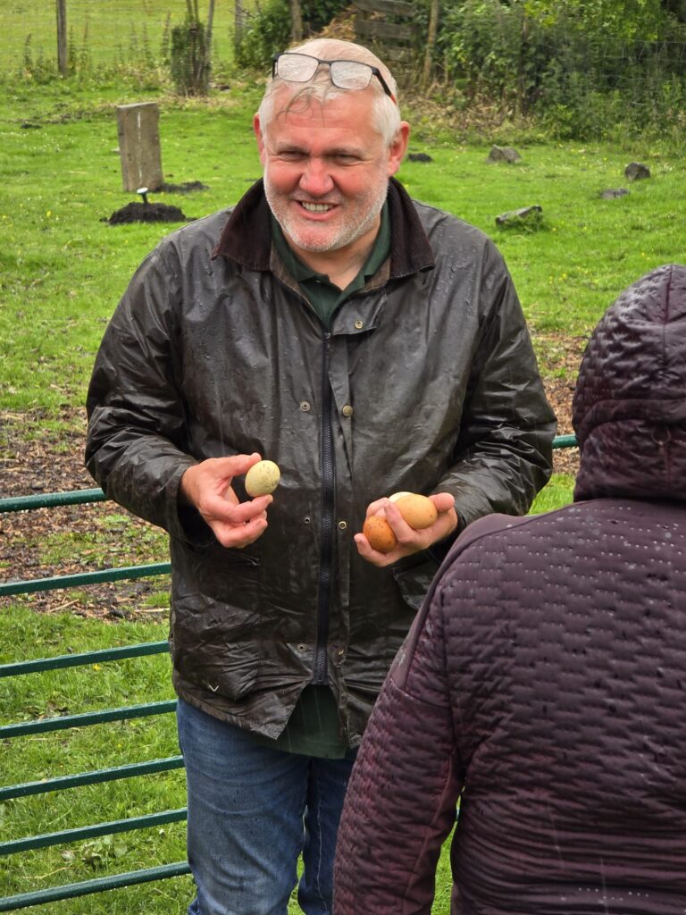 We now have 36 Pedigree Ryeland Sheep – they are a heritage breed and so take much longer to grow than the modern commercial breeds. They are hardy and stay out all winter and they eat almost exclusively grass. They love interacting with people and saying hello and love a treat.”